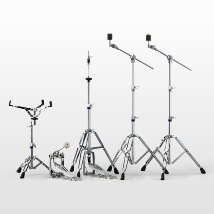 All stand legs in this set feature exceptionally stable double-braced construction. The hardware itself may be lightweight, but with a chain-type foot pedal and other solid features this hardware will stand up to heavy rock drumming.