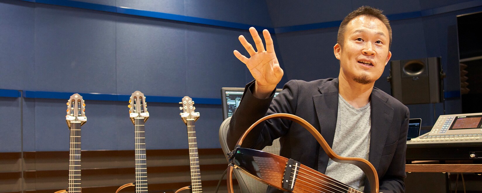 Hidenari Kim joined Yamaha in 2007 as a signal processing expert on the development of acoustic compensation systems for use in halls and theaters. From 2012, he participated in the development of the SLG200 series, which was equipped with the SRT Powered pickup system. He worked on everything from element technology development to sound creation. Hidenari was also involved in the development of software used in acoustic electric guitars such as the A Series, TransAcoustic guitars, and the FGX5.