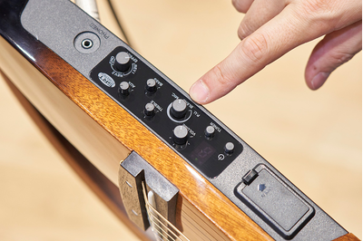 Players can use the controls to make fine adjustments to the blend between the modeled sound and the pickup sound, enabling them to have a fuller sound when playing alone at home, or a brighter sound when playing together with other instruments in a band.