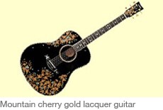 This guitar boasts a bright Japanese design, featuring a mother-of-pearl inlay formed by inlaying shiny pearl gray parts cut from shells, and gold-embossed lacquerwork. The impressively beautiful guitar in the photo features a mountain cherry design, with flowers running up the fingerboard and head. John Lennon is also said to have had a mother-of-pearl dragon guitar made custom for him.