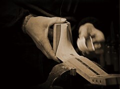 The saddle captures string vibration transferring it through the bridge and on to the top. The relationship of these three components; saddle, bridge, and top, is extremely important on a guitar. Using their advanced skills, our craftsmen fit the saddle into a groove in the bridge with a high level of surface to surface contact. The bridge is also precisely positioned and glued into on the top with a high level of accuracy.