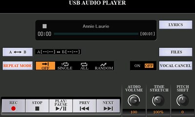 • USB audio playback with time stretch, pitch shift, vocal cancel and MP3 lyric display functions