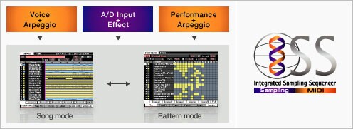 MOTIF XF har en integrert sampling sequencer som lar deg kombinere MIDI og lyd-samplinger (drevet av MIDI-hendelser), slik at du kan lage komplette sanger inkludert vokaler, gitarer og akustiske instrumenter, alt direkte inne i MOTIF XF. Og du kan dra nytte av disse kraftige funksjonene med en gang siden det er 128MB innebygget RAM for sampling, så du trenger ikke å kjøpe eksternt minne. XF-sequenceren lar deg også arbeide på måten du foretrekker fordi den har to forskjellige moduser for sequenceren. Den kan både fungere som lineær båndmaskinaktig, 16-spors sequencer for opptak og punching in og ut som du ville gjort på et båndmaskinaktig DAW-grensesnitt. Den inkluderer også en 16-spors sequencer som lar deg arbeide i looper og bygge opp seksjoner av sangen din (vers, refreng, bro, etc.) og flette disse seksjonene sammen til komplette sangstrukturer. Du kan enkelt bytte mellom sang og mønstermodus avhengig av behovene dine. Med den medfølgende Cubase AI-programvaren kan du til og med importere fullførte sanger direkte til Cubase inkludert alle lydsamplingene for videre redigering og mastering. - Integrated Sampling Sequencer Med den i integrerte sampling sequenceren kan du sømløst integrere lyddata (samplet) og MIDI-data. Importering av WAV/AIFF støttes også. Du kan bruke slice-funksjonen for å få tempokontroll med de samplede lydene du importerer på samme måten som du ville ha kontrollert MIDI-data. Du kan for eksempel synkronisere lyddata til samme BPM som MIDI-sekvenser. Ved å forhåndsinnstille tempo, tidssignatur, takt og antall taktslag kan du utføre klipping og lage perfekte lydlooper på en enkel måte. Du kan også bruke forskjellige redigeringskommandoer til å endre på samplingene dine. MOTIF XF støtter funksjoner som tidsstrekking, der samplinglengden er endret mens tonehøyden er den samme, endre tonehøyde der tonehøyden endres mens lengden til samplingen forblir den samme, og remiksing av loop som med en gang lager nye musikalske variasjoner av grooves. I tillegg er det en resamplingsfunksjon som du kan bruke til å spille inn performance-en til MOTIF XF som en enkelt lydsampling.