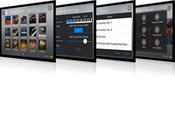 Touch the screen to set up “Dual” mode (layering two different Voices together) or “Split” mode (dividing keyboard into left and right sides and assign different Voices to each) in a simple and intuitive manner. Selections can be made smoothly by checking the "song name" on the song screen and the "type name" on the reverb and effect setting screen.