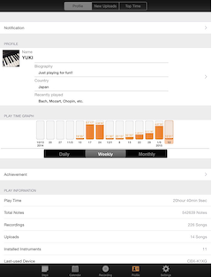 By connecting your MIDI instrument to an iPhone/iPad with the Yamaha i-MX1 cable you can record your daily performances in Piano Diary for later playback to your instrument, exactly as you played. Plus, don’t worry if you lose your iPhone/iPad, as all performance data is automatically stored to the ‘Cloud’ in the Piano Diary servers! Simply log onto Piano Diary with another iPhone/iPad to restore all of your performances!