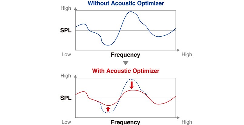 The speakers attached to the case exhibit a phenomenon in which, if nothing is done, the volume of the sound will increase due to the resonant frequency of the material. However, installing Acoustic Optimizers with the same resonant frequency within the body of the piano suppresses this resonance. This improvement of the sound is something that has only been possible thanks to Yamaha‘s thorough knowledge of the internal acoustic characteristics of musical instruments.