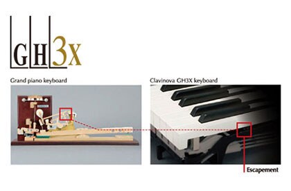 The touch of the Clavinova keyboard has been praised by pianists for a performance feel that makes you forget you’re playing a digital piano, offering authentic response to the force of your touch and a natural key return. Utilizing the same hammering system and spring-less mechanism as a grand piano, GH3X actions accurately reproduce the touch of an acoustic piano from the heavy feel in the lower register to the lighter touch in the upper octaves.