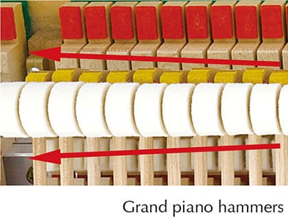 Every single key on a grand piano keyboard is weighted differently. This is because the strings for each note are slightly thinner and shorter in the treble register, becoming thicker and longer towards the bass register. The 88-key Linear Graded Hammers of the Clavinova is the first-of-its-kind to faithfully duplicate this graded touch with differing weights and key return on each one of its keys. This results in a feel and response that is astonishingly like that of a grand piano, and allows players to gain an appreciation of a more authentic touch.
