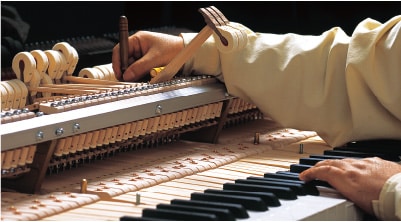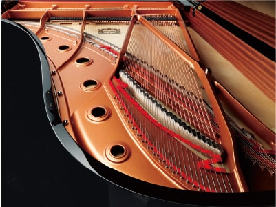 Rammen i et piano må tåle en total strengspenning på over tjue tonn; Ikke bare fungerer rammen for å støtte strengspenningen, men den har en dyp effekt på instrumentets lyd. Yamaha lager sine egne rammer, basert på en metode for støping referert til som "vakuumprosess", verdens første slike teknikk utviklet over mange år for å lage noen av de beste pianorammene. I løpet av denne tiden har vi bygget opp et lager av kunnskap om faktorer som hvordan kontroll av temperaturen og sammensetningen av støping, og til og med belegget som brukes på selve rammen, påvirker pianoets akustiske egenskaper. Dette er en viktig grunn til at Yamaha er i stand til å sikre pålitelig kvalitet når vi lager våre pianoer.