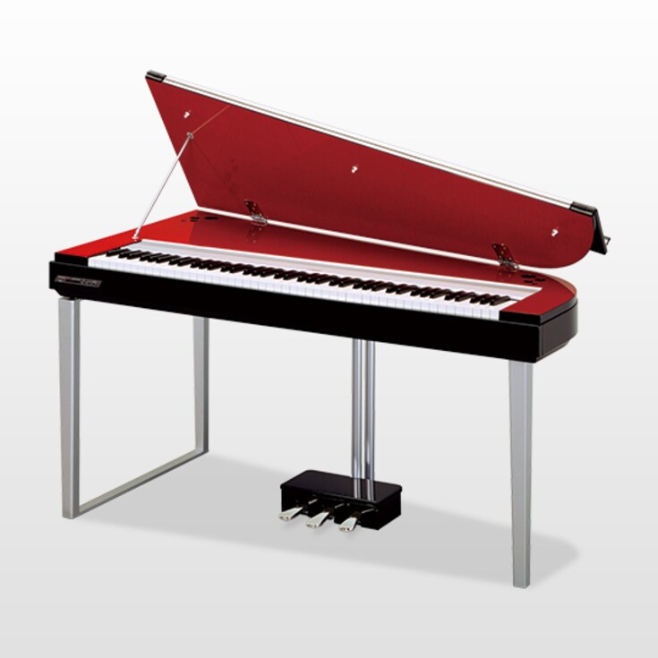 True piano sound in a modern, attractive grand piano shape cabinet.