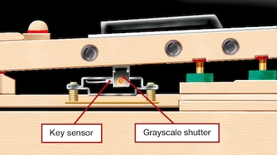 Under each of the 88 keys is a Yamaha-unique continuous-detection grey-scale shutter key sensor. These sensors detect the movement of the keys continually, allowing natural musical expression even when the piano is in TransAcoustic™ mode or SILENT Piano™ mode. Since they do not come into contact with the keys, these sensors do not affect the feel of the keyboard in any way.