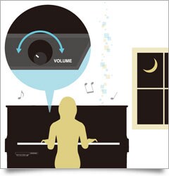 There are times when the full sound of an acoustic piano may not be appreciated by your family or neighbours. For these situations, simply activate the TransAcoustic™ function and the hammers will no longer strike the strings. Non-contact sensors under each individual key detect your keystroke depth, velocity and timing and sends this information to the tone generator. Just adjust the volume and hear the digital sound of your piano performance coming from the entire instrument.