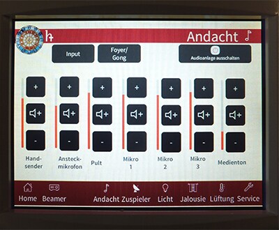 “This project was completely different from a typical church installation, because the three rooms can be used as individual spaces or the walls can be retracted so they are one large area,” says Klartext’s Markus Hein. “We needed a very flexible solution which would deliver high quality sound for all configurations, but be easily controlled via straightforward touch panel controls.”