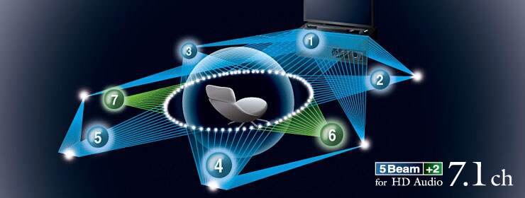 The YSP-3300 achieves actual (not virtual) surround sound by producing beams of sound and using advanced processing to control their directions. You hear real 7.1-channel surround sound with natural ambience and excellent imaging. Yamaha technology also provides the additional benefits of a wide "sweet-spot" listening area and the elimination of listening fatigue.