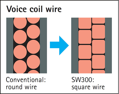 En 25 cm (10'') stor bassenhet brukes i en front-firing konfigurasjon. Talespolen på forsterkerenheten har en firkantet ledning med en stor flate som kan vikles tetter for å oppnå høyere magnetisk fluks-tetthet. Den leverer høy drivkraft, som tillater tett og dyp bassgjengivelse.