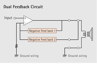 Den innebygde forsterkeren leverer en stabilt utgangseffekt på 250W med høy effektivitet samtidig som strømforbruket og varmeproduksjonen reduseres. Det krever ikke et utgangsfilter-spole, noe som resulterer i ekstremt lav støy og forvrenging. Høyhastigshets transient responsen er også utmerket. Den doble tilbakemelding-kretsen reduserer forvrenging ved å brukt tilbakemelding to ganger, som resulterer i høyere lyd-klarhet.