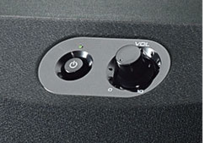 Strøm og volumknappene, som blir brukt oftest, er lagt ut p forsiden av enheten for enkel tilgang. Det er i en vinkel på 45°, noe som gjør det lett å bruke selv når den plassere på gulvet. En LED-indukator er over på strømkanppen, slik at selv i et svakt opplyst rom, så er det lett å se om den er på eller av.