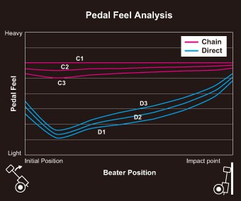 The direct drive creates a direct link between the footboard and the beater, conveying the movement of the drummer's foot to the beater instantaneously. The link can be slid into three positions,allowing the drummer to fine tune the pedal's action to match their preferred performance.