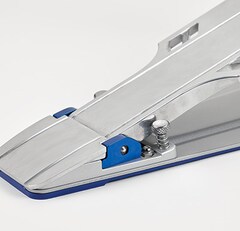 The hinge base and cover (blue parts) are independently smoothed and precisely fabricated before assembly, allowing smooth foot board performance.