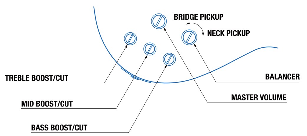 | Controls | Master Volume, Pickup Balancer, 3-Band EQ(Bass, Middle, Treble) | ||