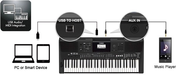 The PSR-E463 features audio transfer through the USB TO HOST terminal*. You can record your performance to your computer or smart device.
