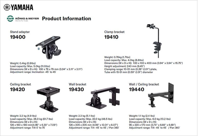 Founded in 1949, König & Meyer is a leading global manufacturer of stands for microphones, speakers and musical instruments, providing a range of high quality, durable bracket and stand hardware which is fully compatible with Yamaha equipment.