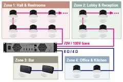 The newly developed Double Power Mode function effectively doubles the output power of selected channels in order to drive speakers with higher output power. This means that speakers with varying output capacities can be powered simultaneously by the same amplifier, adding flexibility to system design and configuration.*The number of channels that can be used will be reduced to half