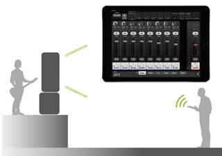 The MonitorMix application for the TF Series allows individual wireless AUX mixing from up to 10 iPhone, iPad or iPod touch devices simultaneously. Each performer can have convenient control over the AUX buses assigned to them, without having to deal with complex settings or parameters. They can also create personal Group settings for even easier adjustment: all levels on just one fader, for example. Since up to three devices running TF Editor or StageMix and up to 10 devices running MonitorMix can be connected at the same time, even large bands can have the personal control they need, reducing demands on the sound engineer.